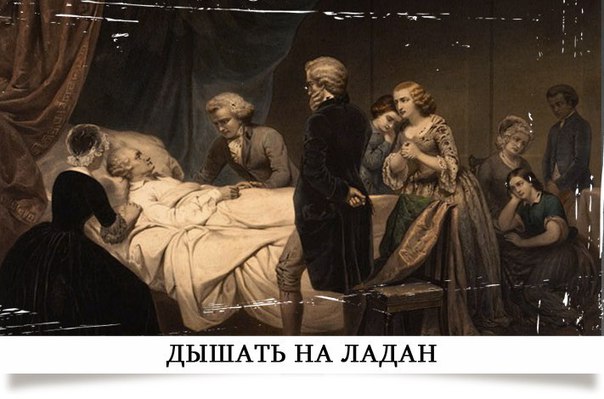 Дышит на ладан: По христианскому обычаю, человека, которому оставалось недолго жить, священник исповедовал, причащал и кадил ладаном. В результате для обозначения болезненного человека или еле работающего устройства закрепилось выражение «дышит на ладан».